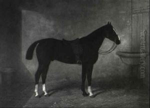 A Saddled Bay Hunter Tethered To A Gatehouse, With A Terrier