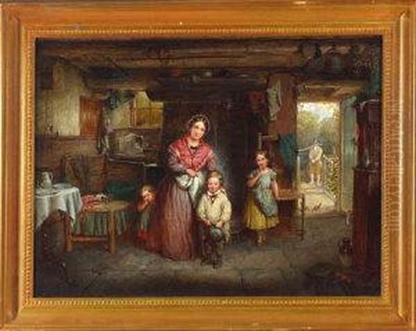 "leaving Home" - A Cottage Interior With A Mother Saying Goodbye Toher Small Sone