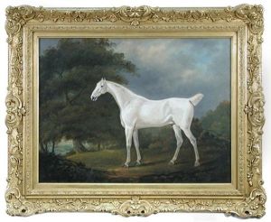 A Dark Bay Hunter And A King Charles Spaniel Before Acle Church, Norfolk