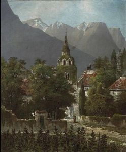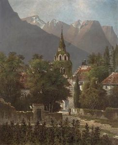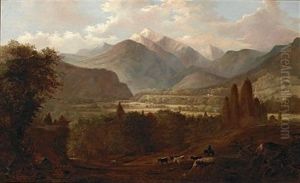 A Valley Landscape With Cattle And Snow-capped Mountains Beyond