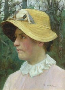 Head Of A Young Woman Wearing A Straw Bonnet