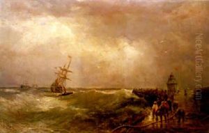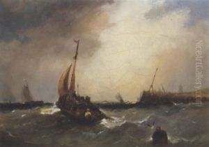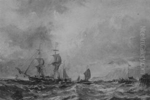 Shipping In Squally Conditions Off A Harbour Mouth (+ Running Home In A Gale, Smaller; 2 Works)