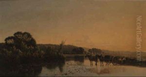 Cart And Horses By A River