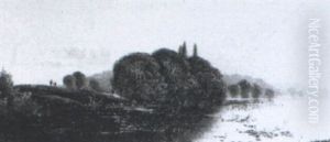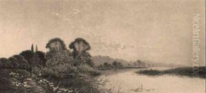 River Landscape With Fisherman Preparing Nets