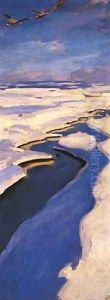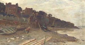 Landschaft Mit Gansen Und Wascherin Oil Painting by Edwin Ellis