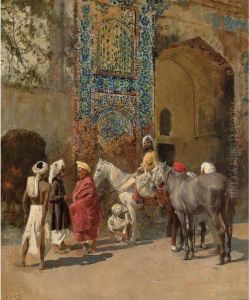 Departure For The Hunt In The Forecourt Of A Palace Ofjodhpore