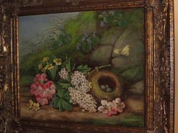 Still Life Of Flowers And Birds Nest With Eggs