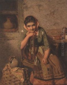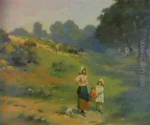 Young Girl With A Water Jar In A Landscape