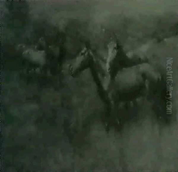 Indian Ponies Grazing Oil Painting by Edwin Willard Deming