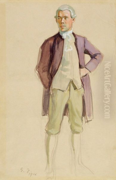 Seisova rokokoopukuinen mies (F.E. Sillanpaa), harjoitelma Aurora-seuraa varten