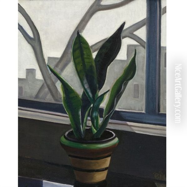 Still Life Of A Plant On A Window Sill