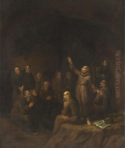Monks Preaching And Praying In A Cave