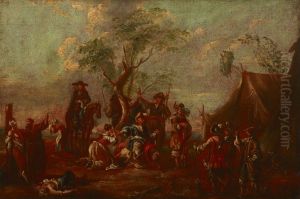 Un Campement De Soldat Devant Une Ville Assiegee Oil Painting by Egbert van der Poel