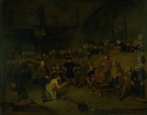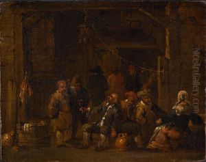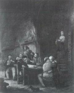 Tavern Interiors With Boors Playing Cards And Singing At A Table