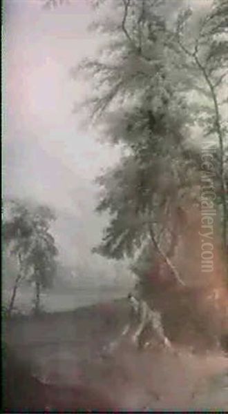 A Boy Snaring Birds At The Edge Of A Wood