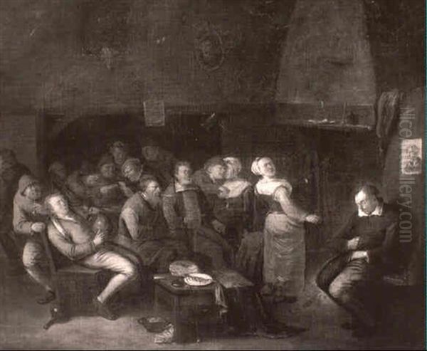 Figures Merrymaking In A Tavern Interior Oil Painting by Egbert Van Heemskerck