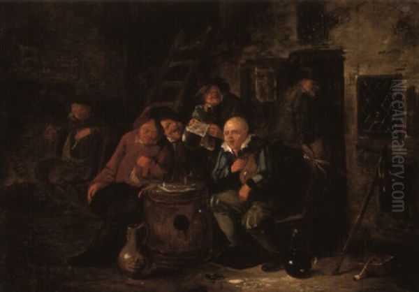 Peasants In A Tavern Oil Painting by Egbert Van Heemskerck