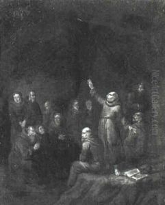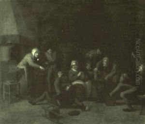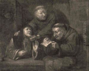Boors In A Tavern Interior Saying Grace Before A Meal