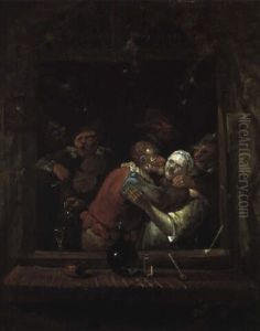 A Boer Serenading A Seated Woman In A Crowded Interior
