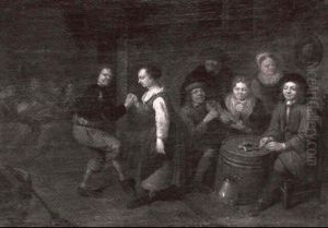 Zechende Bauern Mit Einem Soldaten In Einem Wirtshaus