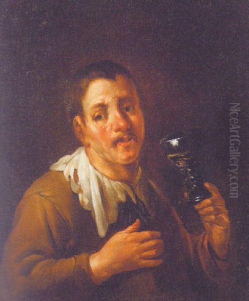 A Man Holding A Roemer Oil Painting by Egbert van Heemskerck the Younger