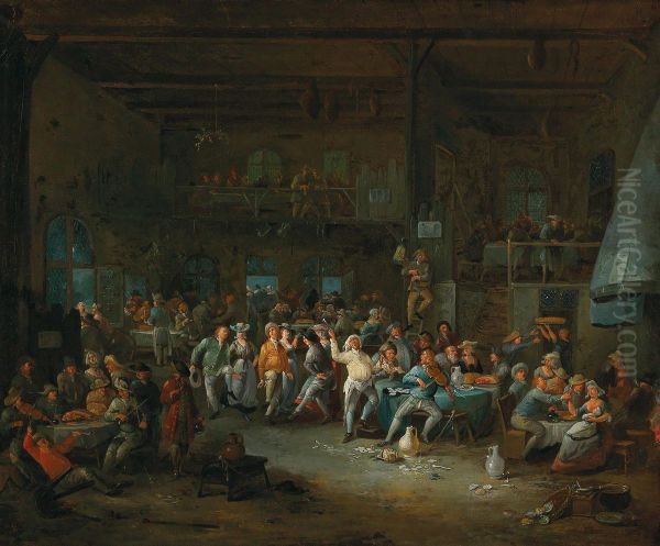 Tavern interior with merry making peasants