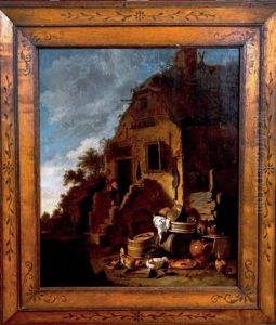 Nature Morte D'instruments De Cuisine Devant L'entree D'une Maison