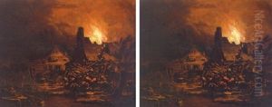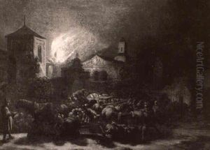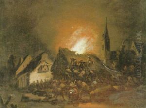 A Night Scene With Soldiers Setting A Village On Fire And Driving Out Its Inhabitants