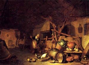 Cottage Interior With A Maid Peeling Turnips And A Man Approaching