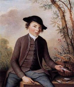 A Kitchenmaid Cleaning Fish Before A Farmhouse