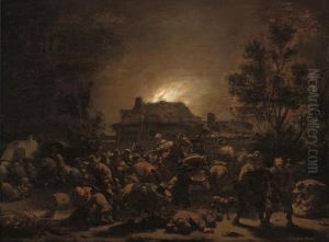 Cavalrymen Pillaging A Village Oil Painting by Egbert van der Poel