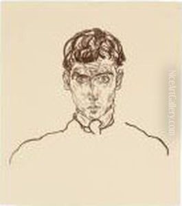 Portrat Franz Hauer Mit Einer Vorzugsausgabe Des Egon Schieleoeuvre-kataloges Von Otto Kallir