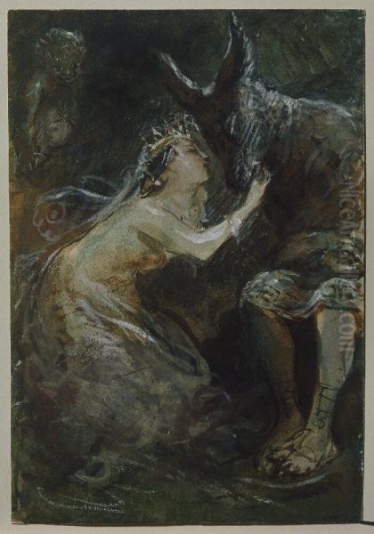 Ur "En midsommarnattsdrom" av Shakespeare. Titania smeker Bottom som fatt ett asnehuvud