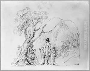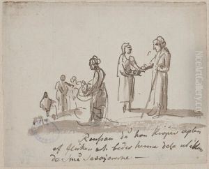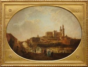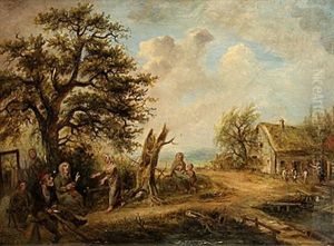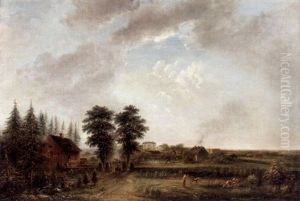 Landskap Med Hus - Flojtspelare Och Ahorare I Forgrunden