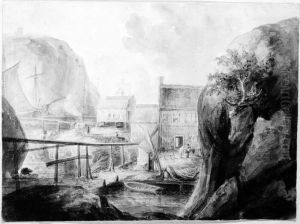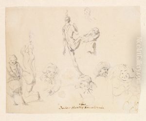 Forlaga till illustration nummer sju ur Bellmans "Bacchi Tempel opnadt vid En Hieltes Dod"