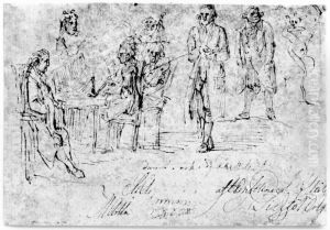 Forlaga till illustration nummer atta ur Bellmans "Bacchi Tempel opnadt vid En Hieltes Dod"