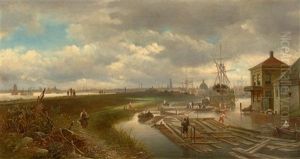 A View Of The Ij By Moonlight, Amsterdam In The Distance