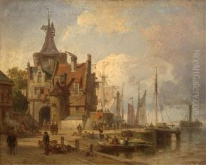 A Dutch Port At Sunset