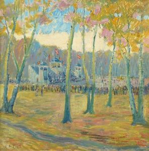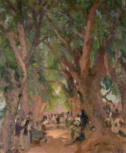 Figures Taking A Stroll In The Luxembourg Gardens, The Pantheon Beyond
