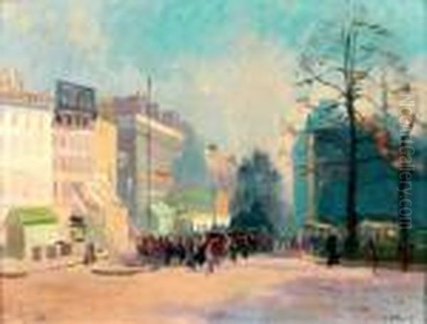 Rue Animee A Paris Oil Painting by Elie Anatole Pavil