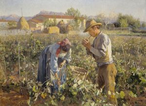 In 1895, Elin Danielson-Gambogi moved to Italy after marrying an Italian painter, Raffaello Gambogi. Together, they lived in the Tuscan countryside, where she found new inspiration in the vibrant landscapes and the Mediterranean light. Her work from this period is characterized by a brighter palette and a looser brushwork, reflecting the influence of her surroundings and possibly the Italian Divisionism, an equivalent of French Pointillism.