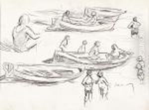 Paisaje Costero Con Figura Femenina Abocetada