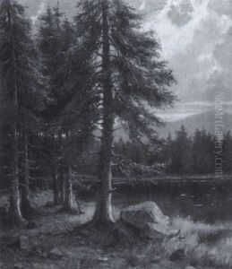 Schafer Mit Seiner Herde An Einem Teich Im Gebirgstal