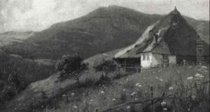 Berglandschaft Mit Reetbedecktem Bauernhaus