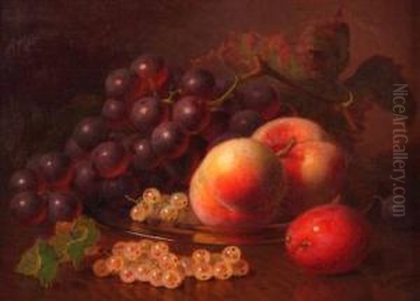 Still Life Study Of Peaches, Grapes And Whitecurrants