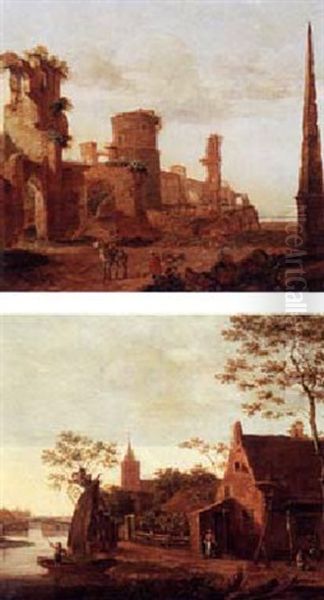 A Horseman With A Beggar Near Ruins Of A Fortified Fort