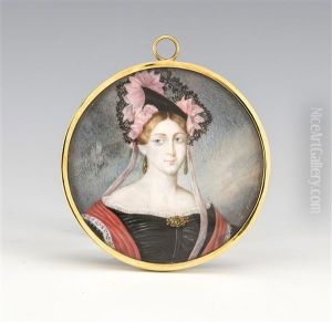 A Portrait Of A Countess Szechy In A Pink Dress Kleid With A Bouquet Of Violets Against A Column And Cloudy Background