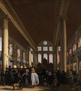 The Interior Of The Oude Kerk In Delft, From The South Aisle To Thecrossing, Towards The Noth-east, During The Preaching Of Asermon