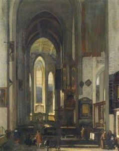 A Church Interior With Elements Of The Oude Kerk And Nieuwe Kerk In Amsterdam, The Epitaph Of Cornelis Johannes De Haan To The Right