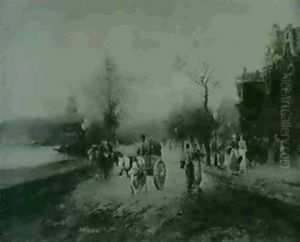 Stadtmotiv Mit Reicher Figurlicher Staffage